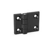 Hinges EN 237.1 with horizontally extended hinge leafs are made in a compact and sturdy design. They are used when larger spacings are required for the attachment bore holes.